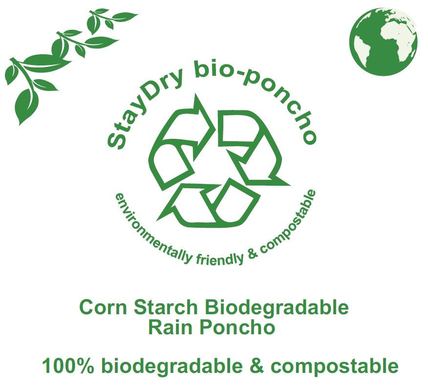 You can order branded degradable and biodegradable compostable ponchos. We have a whole page outlining our eco-friendly options: