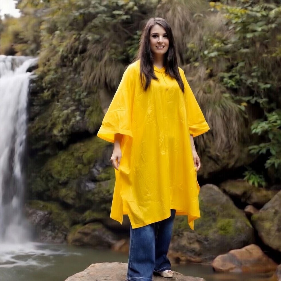 Waterproof Rain Poncho, Reusable Deluxe PVC with hood. 50″ x 40″ from shoulder to hem. 50″ x 80″ laid out as a groundsheet, one size fits all. Heat sealed seams. Popper fastenings. Softer feel PVC.