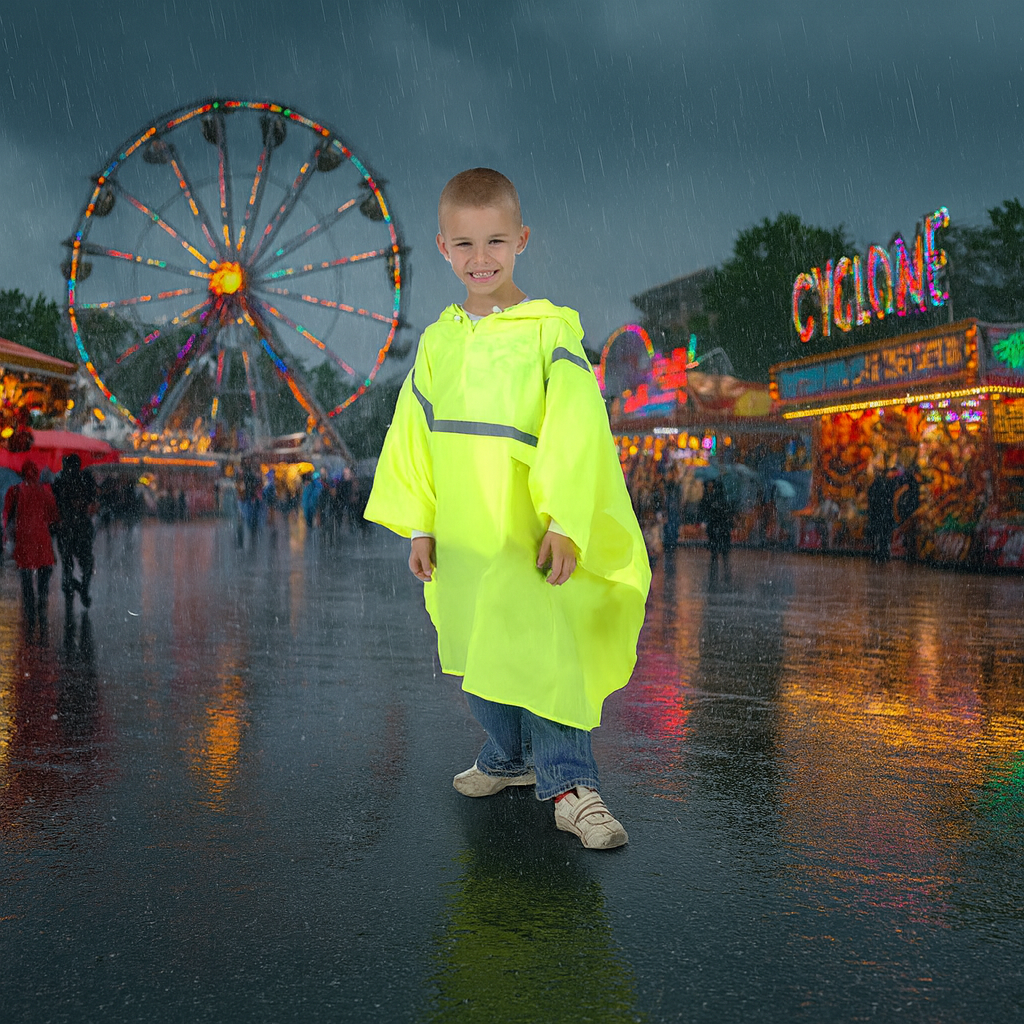 Child Polyester High Visibility Waterproof Rain Poncho With Hood