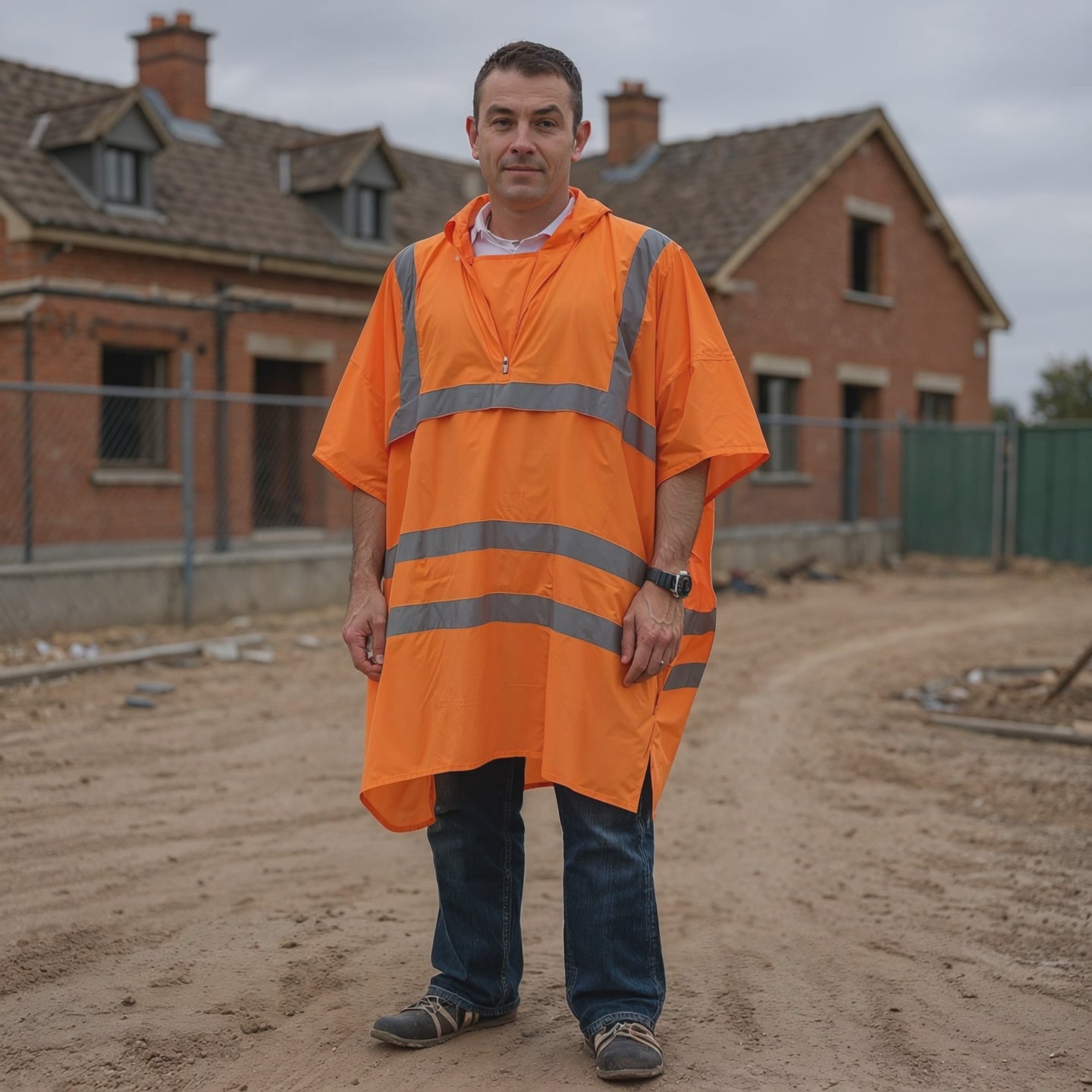 High Visibility Adult Water Resistant Rain Poncho With Hood